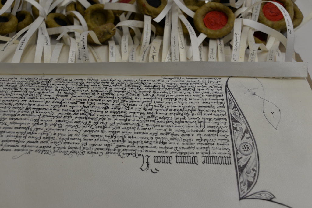 - Pergaminowy dokument Hołdu Pruskiego z czterema pieczęciami z 1525 roku. Dokument traktatu zawartego między Zygmuntem, królem Polski, a Albrechtem, margrabią brandenburskim, na mocy którego likwiduje się stan wojny między stronami, a utworzone z ziem pruskich świeckie księstwo, jako lenno króla i Korony Polskiej, pozostaje dziedzictwem Albrechta. Traktat regulował stosunki gospodarcze i handlowe między obu krajami.