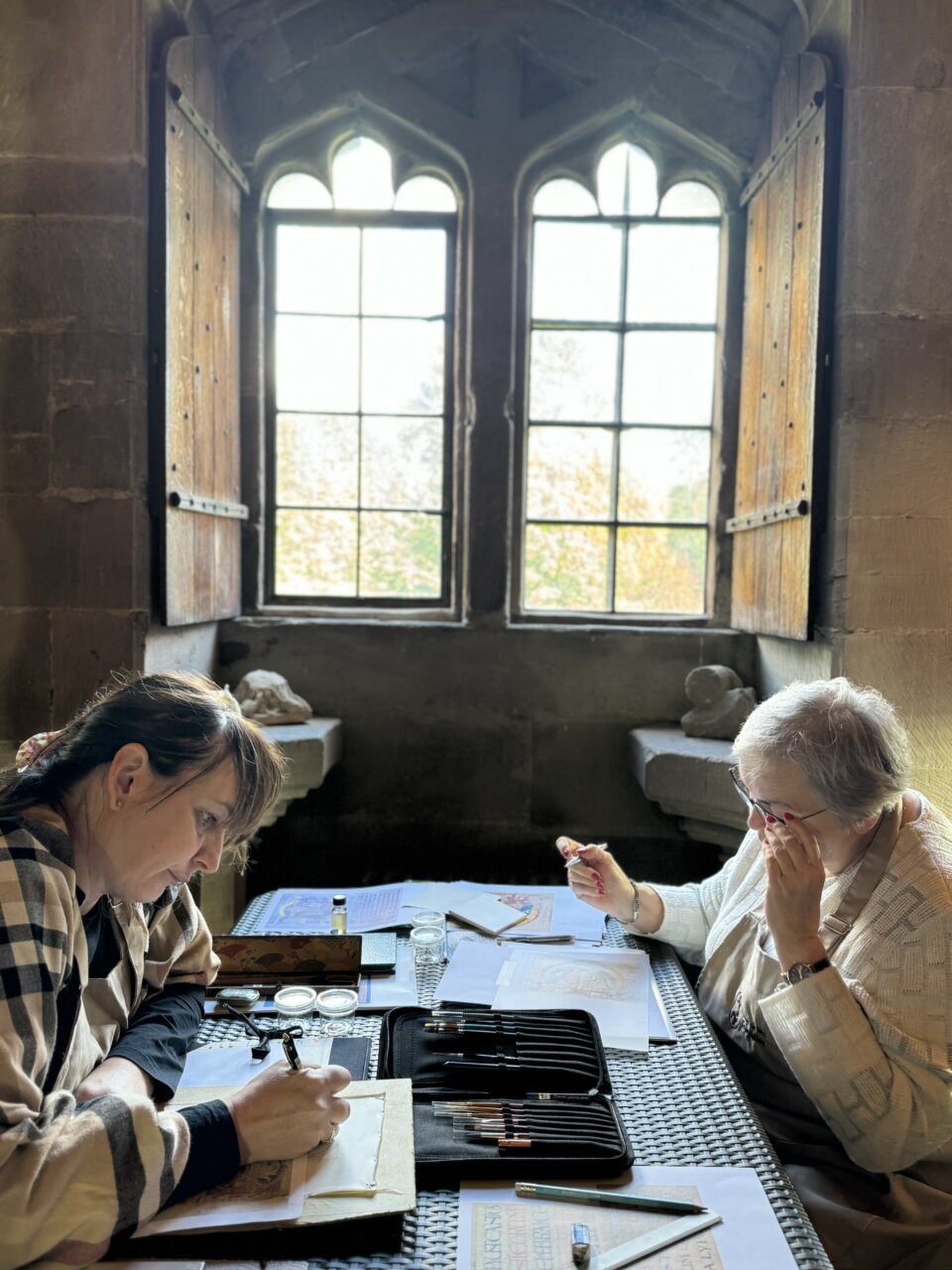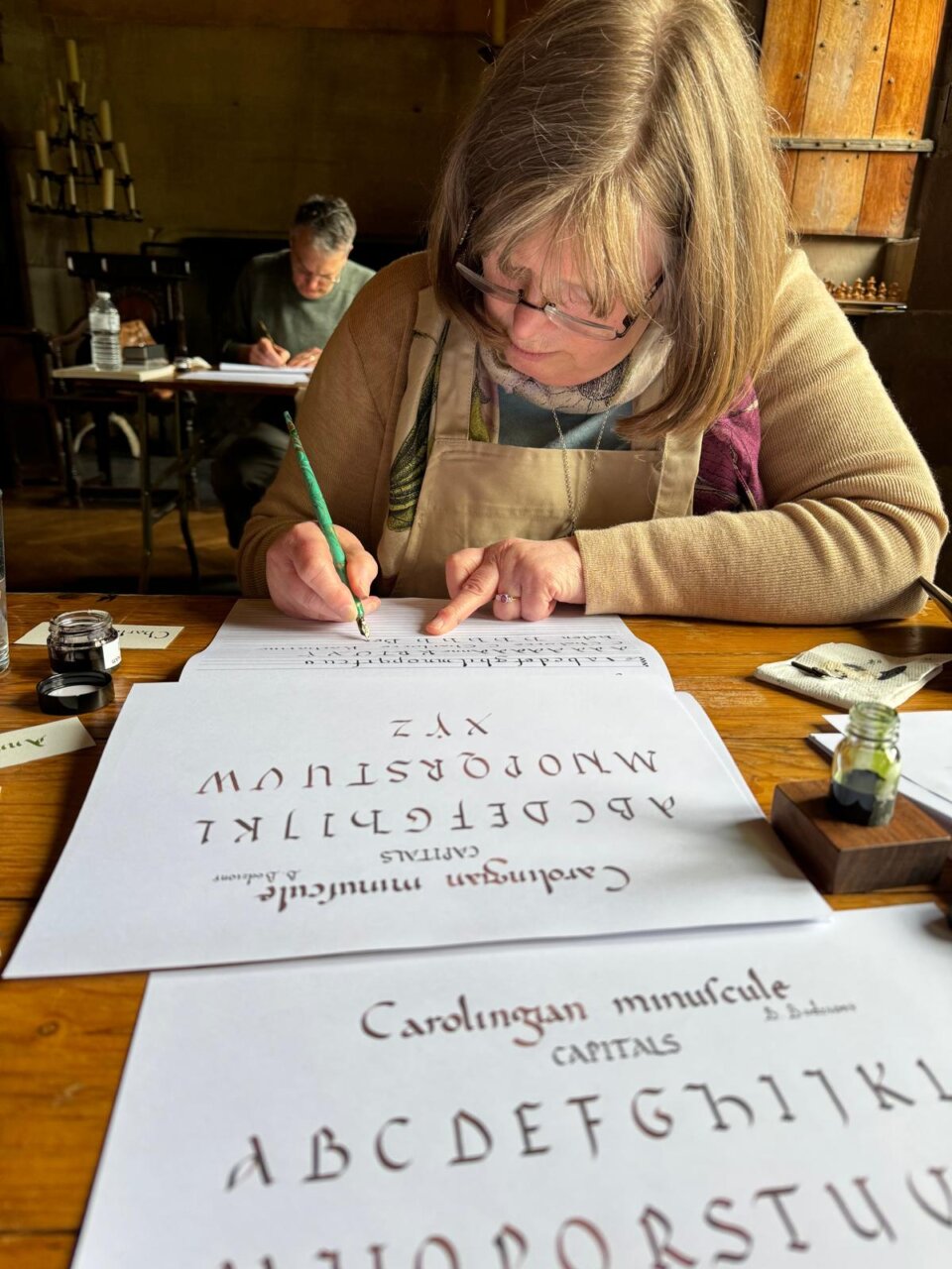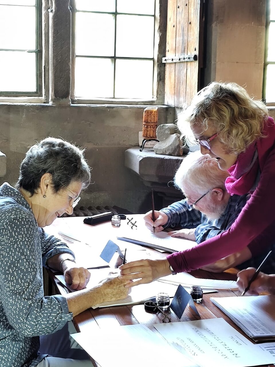 Miejsce idealnie nadaje się na warsztaty średniowiecznej kaligrafii i iluminacji. Stanowi część dawnego klasztoru benedyktyńskiego, w których tradycyjnie działały skryptoria, a także posiada bardzo wiele autentycznej, średniowiecznej struktury, dzięki czemu zajęcia odbywają się pod oryginalnym, drewnianym sufitem z 1425 roku!!! Całość – dom, ogród, ruiny klasztoru obok tworzą wyjątkową atmosferę tego miejsca połączoną z niezwykłą gościnnością gospodarzy.