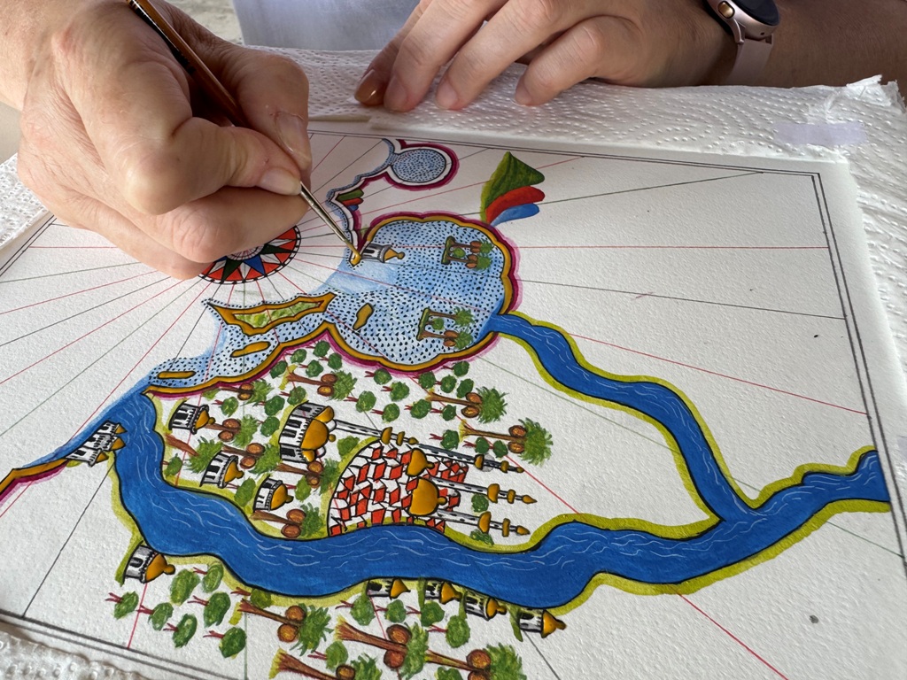 Jednak szczególnym doświadczeniem była realizacja warsztatów na Krużgankach Alfonsa V. Codziennie w zacisznym korytarzu, z pięknym widokiem, na świeżym powietrzu mogliśmy oddawać się precyzyjnej sztuce iluminacji. W 2023 roku tematem były sceny bitewne, a w 2025 mapy.